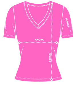 Cuello en V: en sesgo, con la misma tela de la camiseta.